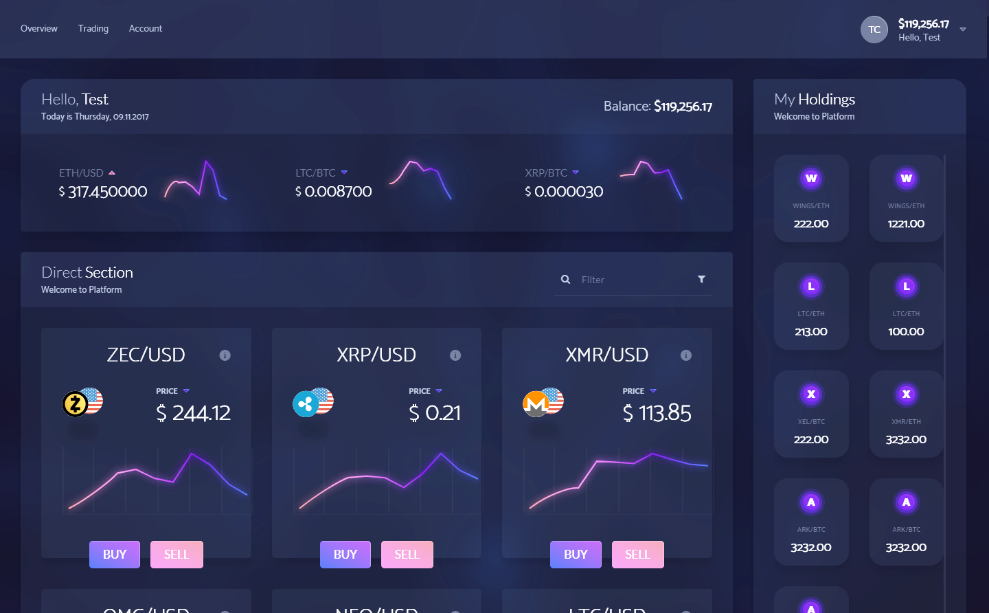 Nous offrons des solutions de trading sécurisées, fiables et simples. Une interface innovante avec des cours en temps réel, des carnets de commandes, des historiques de transactions et des outils graphiques faciles à utiliser. Faites un investissement et commencez à trader partout.